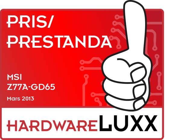 Framförallt imponerar MSI Z77A-GD65 med låg strömförbrukning och ett riktigt vettigt pris. I den här prisklassen måste man dock vara utan vissa komponenter och det finns inte allt för många extra anslutningar. Tillverkaren har dock inkluderat FireWire ä...